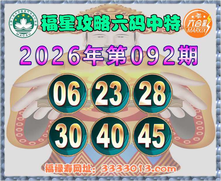 092期:【福星攻略】 🧏‍♀️六码中特🧏‍♀️【06.23.28.30.40.45】开:06