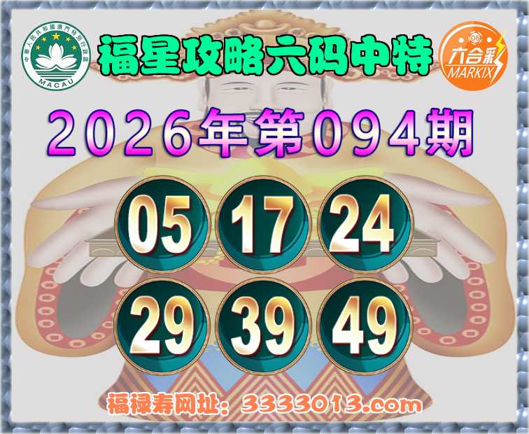 094期:【福星攻略】 🧏‍♀️六码中特🧏‍♀️【05.17.24.29.39.49】开:17