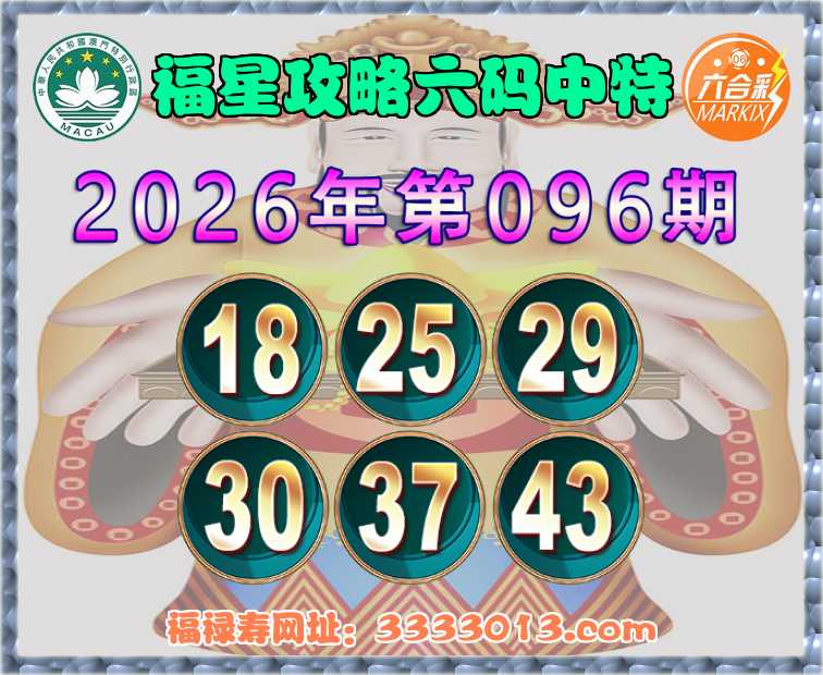 096期:【福星攻略】 🧏‍♀️六码中特🧏‍♀️【18.25.29.30.37.43】开:43