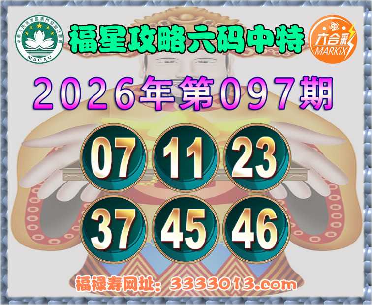 097期:【福星攻略】 🧏‍♀️六码中特🧏‍♀️【07.11.23.37.45.46】开:11