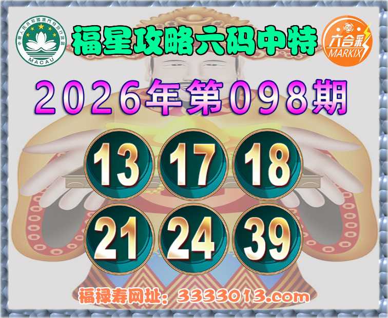 098期:【福星攻略】 🧏‍♀️六码中特🧏‍♀️【13.17.18.21.24.39】开:17