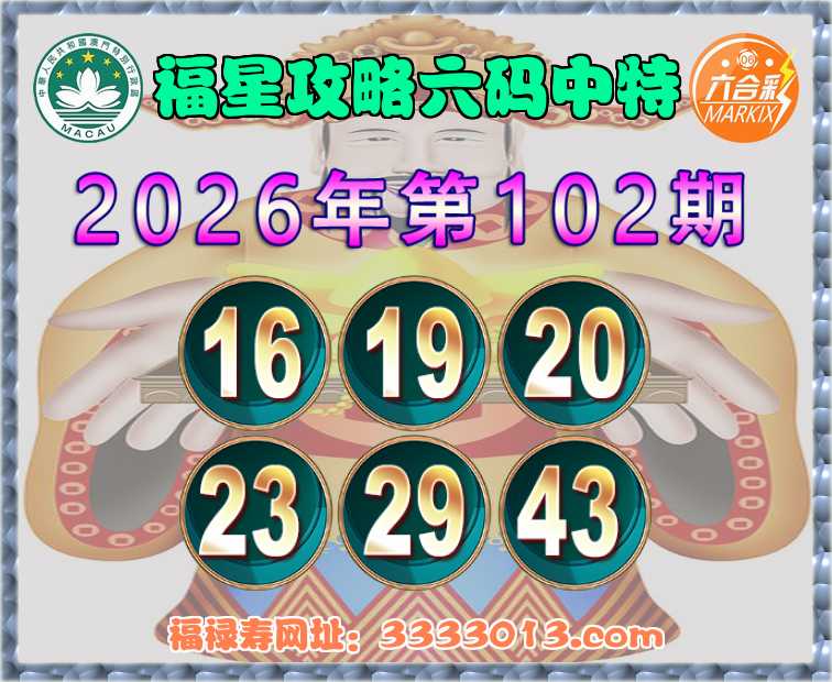 102期:【福星攻略】 🧏‍♀️六码中特🧏‍♀️【16.19.20.23.29.43】开:20