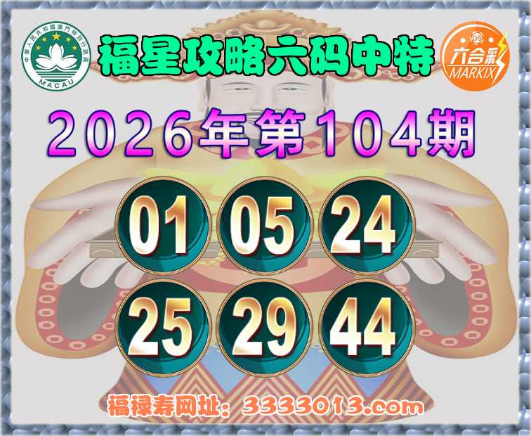 104期:【福星攻略】 🧏‍♀️六码中特🧏‍♀️【01.05.24.25.29.44】开:01