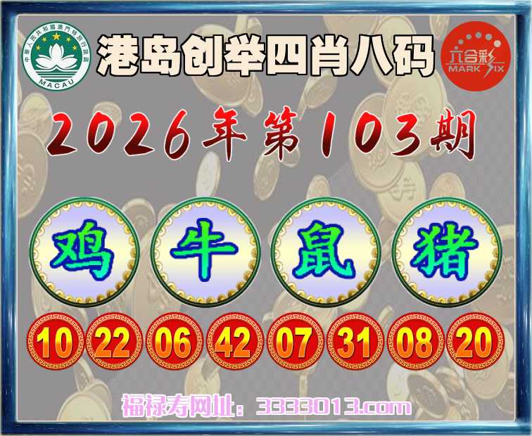 103期:〖港岛创举〗 🏅四肖八码🏅【鸡鼠猪】开:牛06