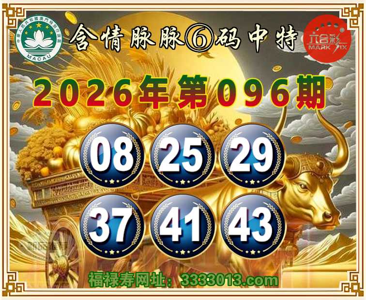 096期:『含情脉脉』 ☘️⑥码中特☘️【08.25.29.37.41.43】开:43