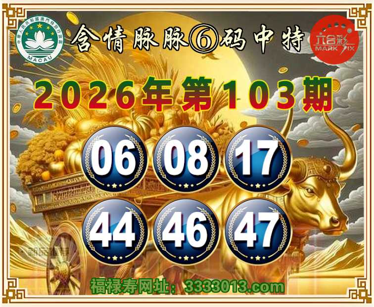 103期:『含情脉脉』 ☘️⑥码中特☘️【06.08.17.44.46.47】开:06